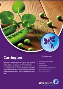 Carrington is speciaal geselecteerd als een mooi rondzadig ‘donker’ groene erwt, welke ook geschikt is als spliterwt.